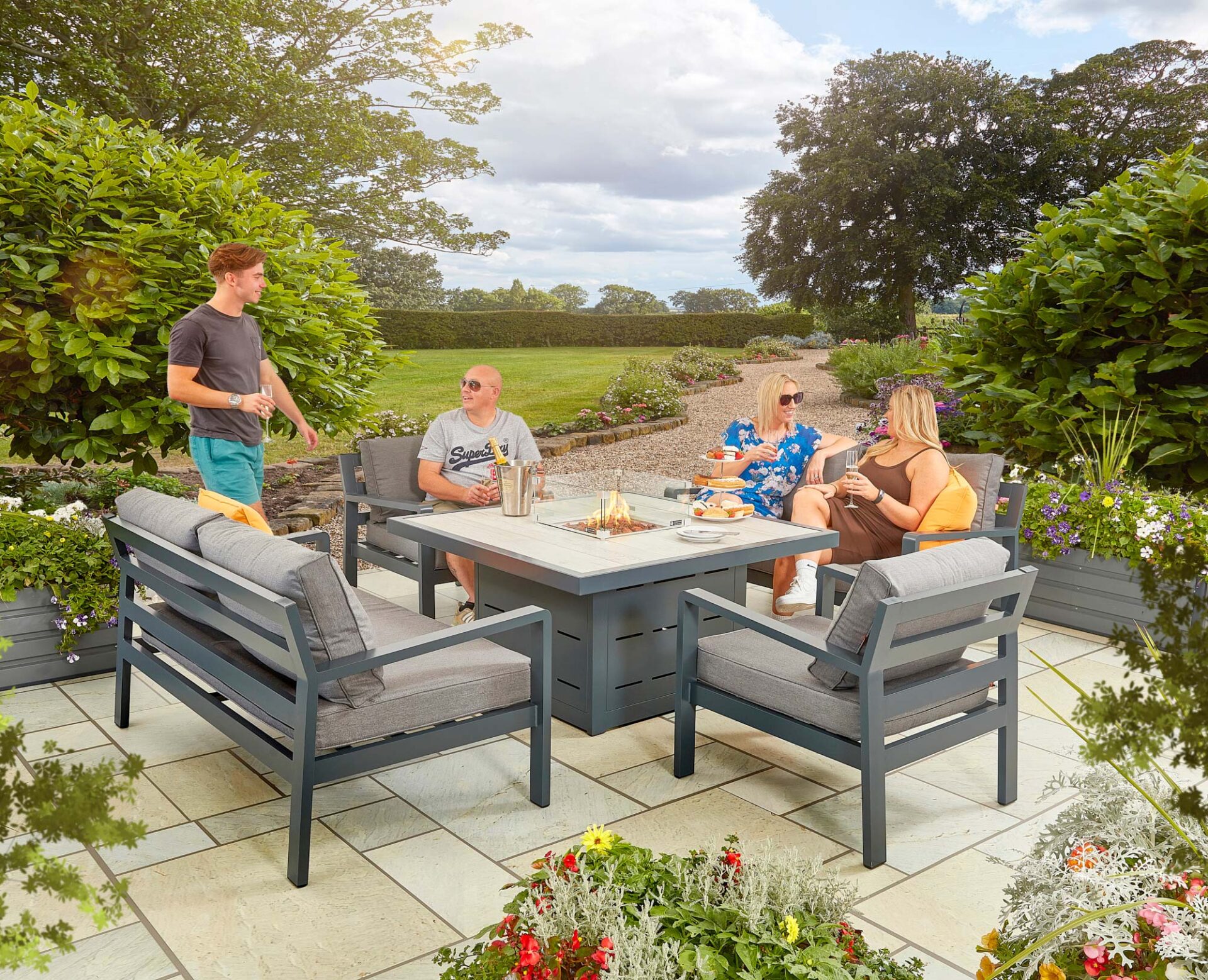 Tutbury Fire Pit Table Set with Two Sofas and Two Chairs