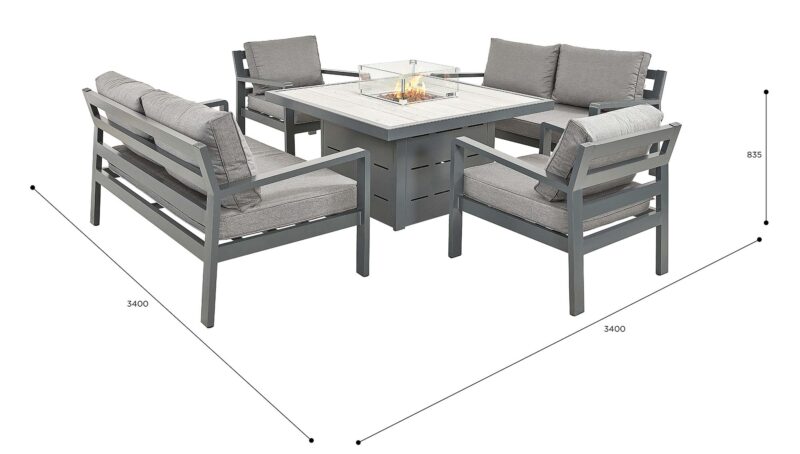 With plenty of room to accommodate friends and family, this outdoor furniture set is a great addition to the home. Comprising of two large, two-seater sofas and two comfortable chairs, set around our stylish firepit table, you can be assured the fun doesn’t have to stop when the weather cools.