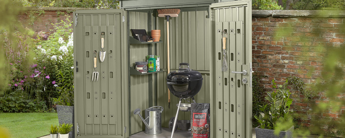 Short on space? The Weston unit offers a slim, stylish solution with internal shelving and handy hooks perfect for tools, lanterns, or even a stash of mugs for those crisp morning coffees. We’ve even seen it reinvented as a mini garden bar!