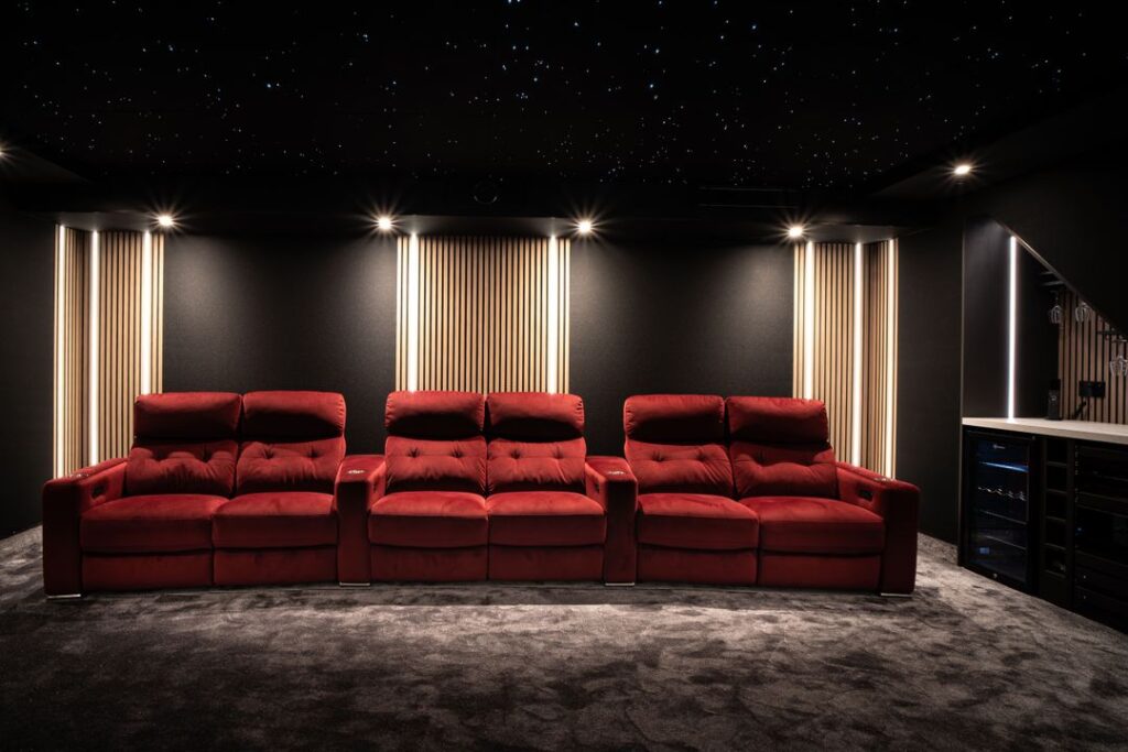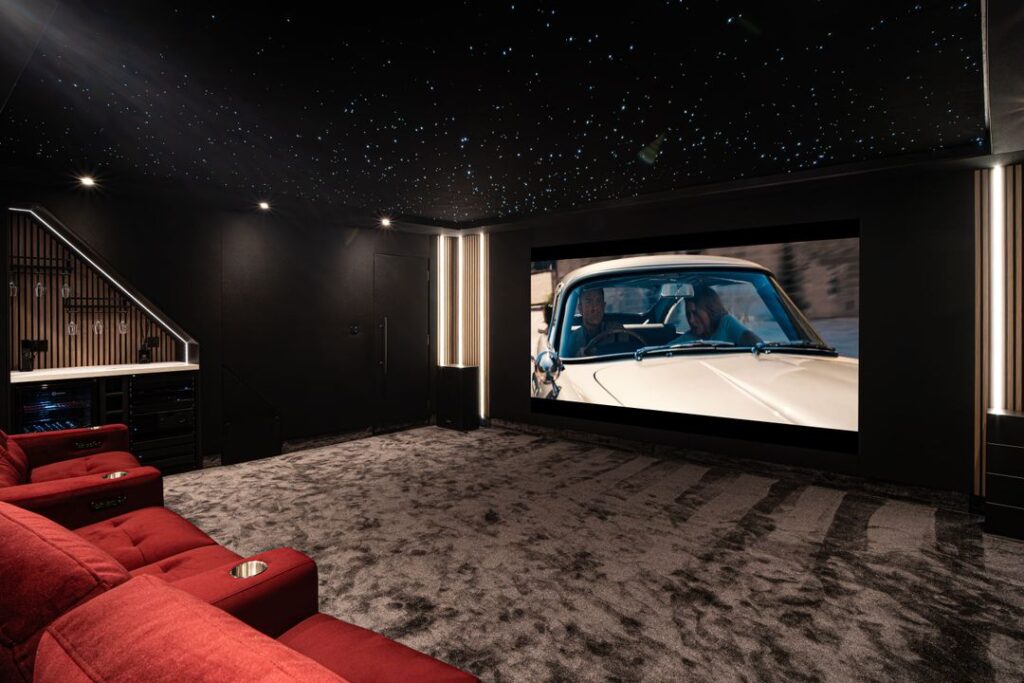 Designed and delivered by Powell Design & Construction, the whole project was shaped with that in mind. Inside, the home includes a gym, home office, and a basement cinema. Step outside, and the same level of thought continues: an elevated terrace with countryside views, built‑in seating, a firepit, and a standout outdoor pool.