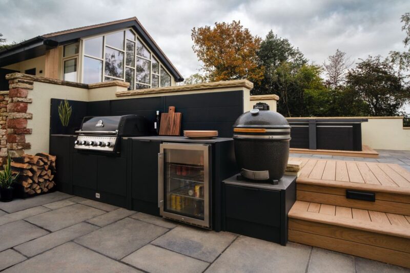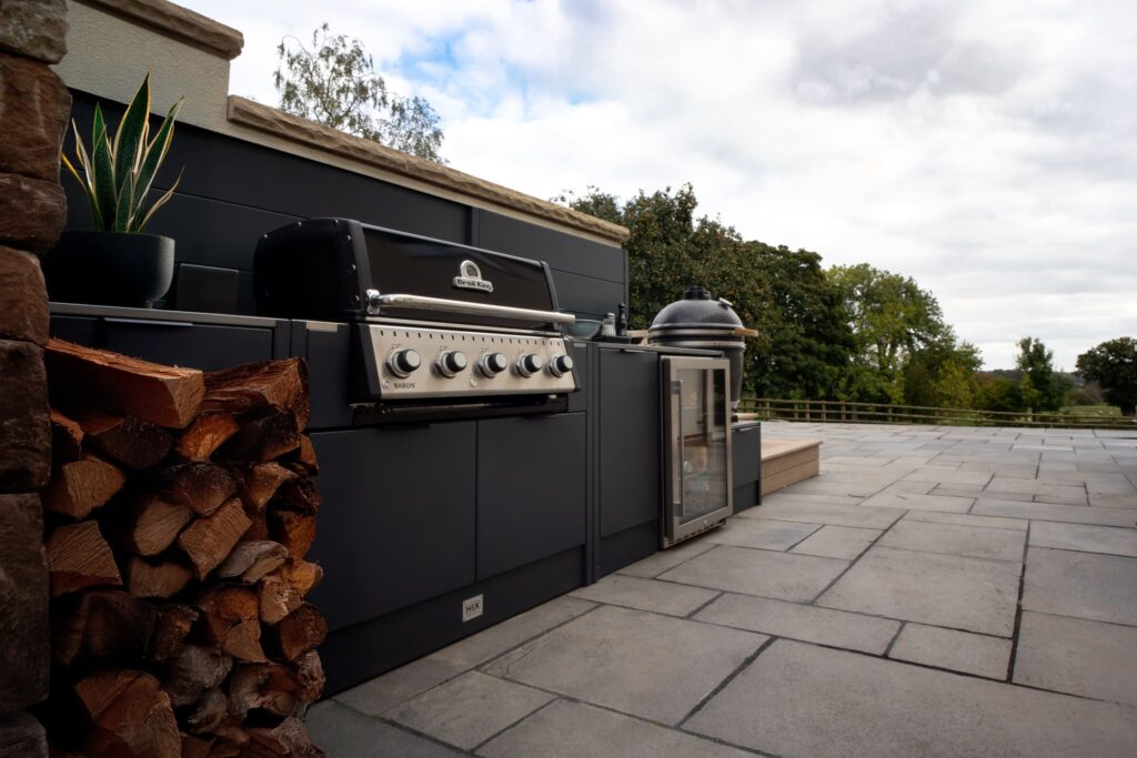 At the centre of that outdoor space is the HEX Living Buckley outdoor kitchen – a UK-crafted, fully equipped unit featuring a Broil King BBQ, Wild Goose Kamado and HCK outdoor cooler, acting as a focal point for the whole garden. It’s a space the family actually uses: to cook, host and spend time outdoors long after summer has passed.