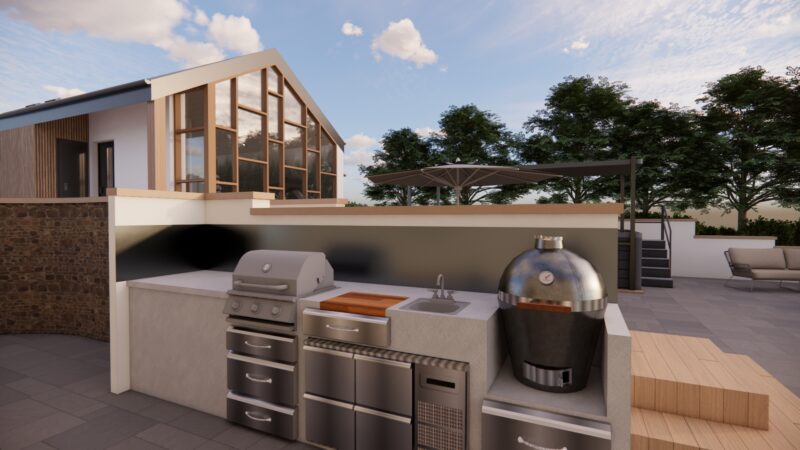 The Ashbourne Retreat shows how an outdoor kitchen can make spending time outside easier and more enjoyable, turning the garden into a natural part of everyday family life.